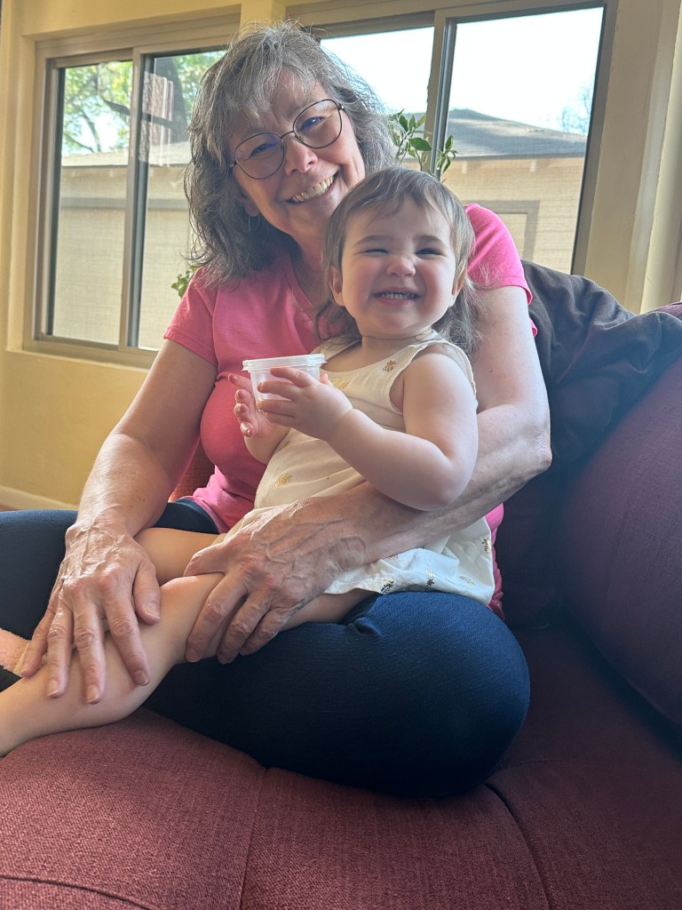 Chloe might be her happiest when she is with her grandparents. She gets to see them on the Portal several times a week, but it’s not quite the same as getting real snuggles from Granny and sharing toast with PopPop. It makes me so happy to see them together and I only wish she got to see them every day, but we are lucky that we can coordinate visits regularly.