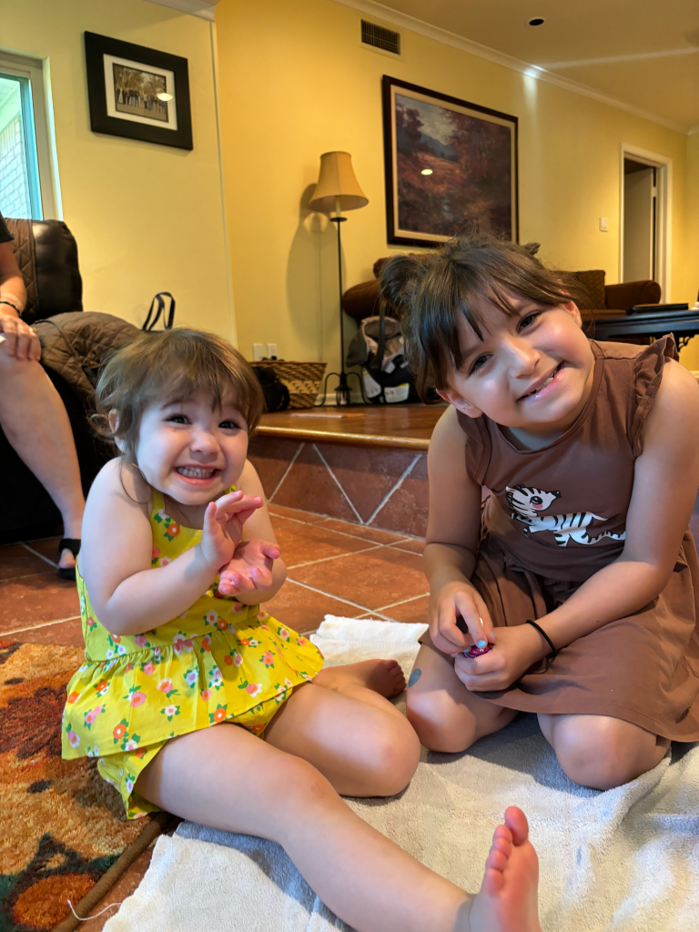 The girls both did great on the flight, boosting my parenting confidence to 110%. Granny and PopPop were, of course, so excited to see us and to cuddle baby Clare who had already grown so much since they had seen her last. We also got to see our cousins, which was so sweet. Every time we visit Texas, I am reminded of how much I love and miss my dad’s side of the family and how much I wish we lived closer together. Particularly when I see Chloe and Hazel play together. They are about 5 years apart in age, but those girls love each other so much and didn’t leave each other’s sides the entire time.