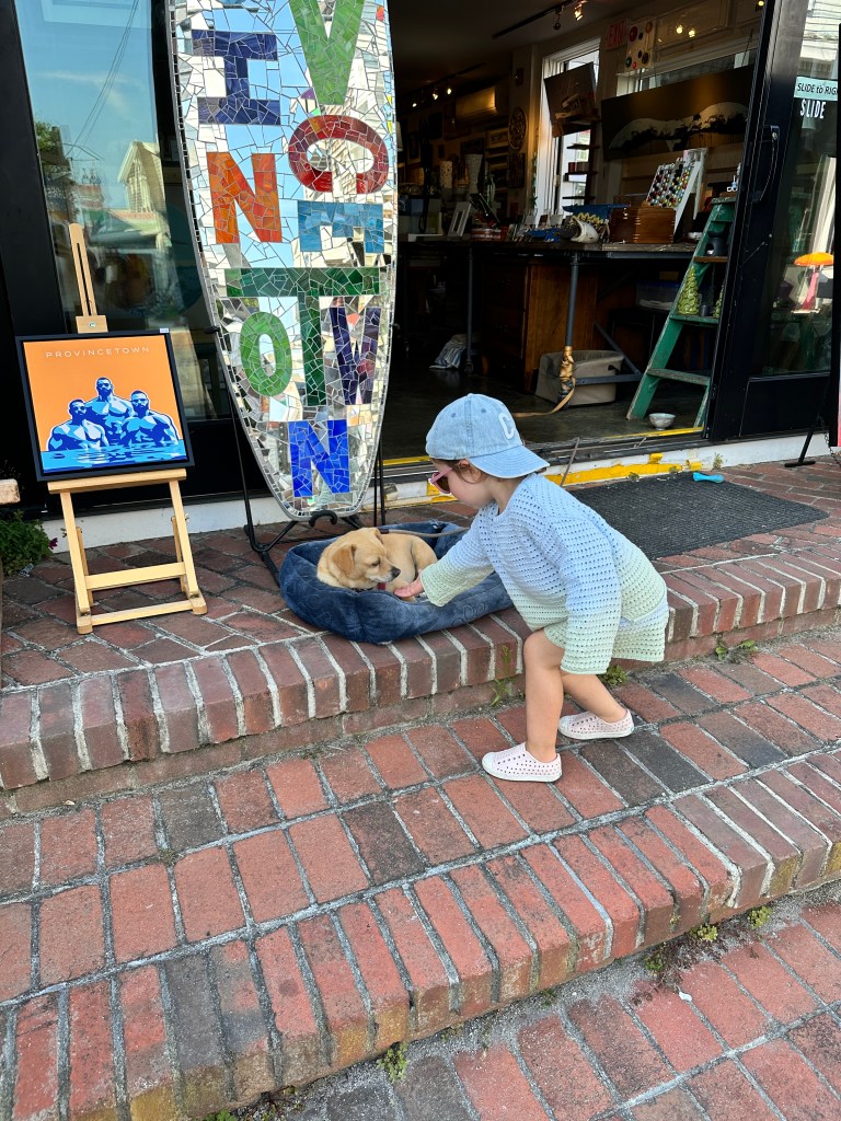 One of the highlights of the trip was our trip to Provincetown. We did the whale watching tour, which we always love to do, and we saw a lot of whales and a whole fleet of dolphins! But the real treat was walking around the town with Chloe. She was so friendly, saying hello to everyone and petting every dog she saw. At one point, we were in a store and someone said, “That little girl is so cute!” and another woman said, “Oh, that’s Chloe.” Clearly, she made an impression.