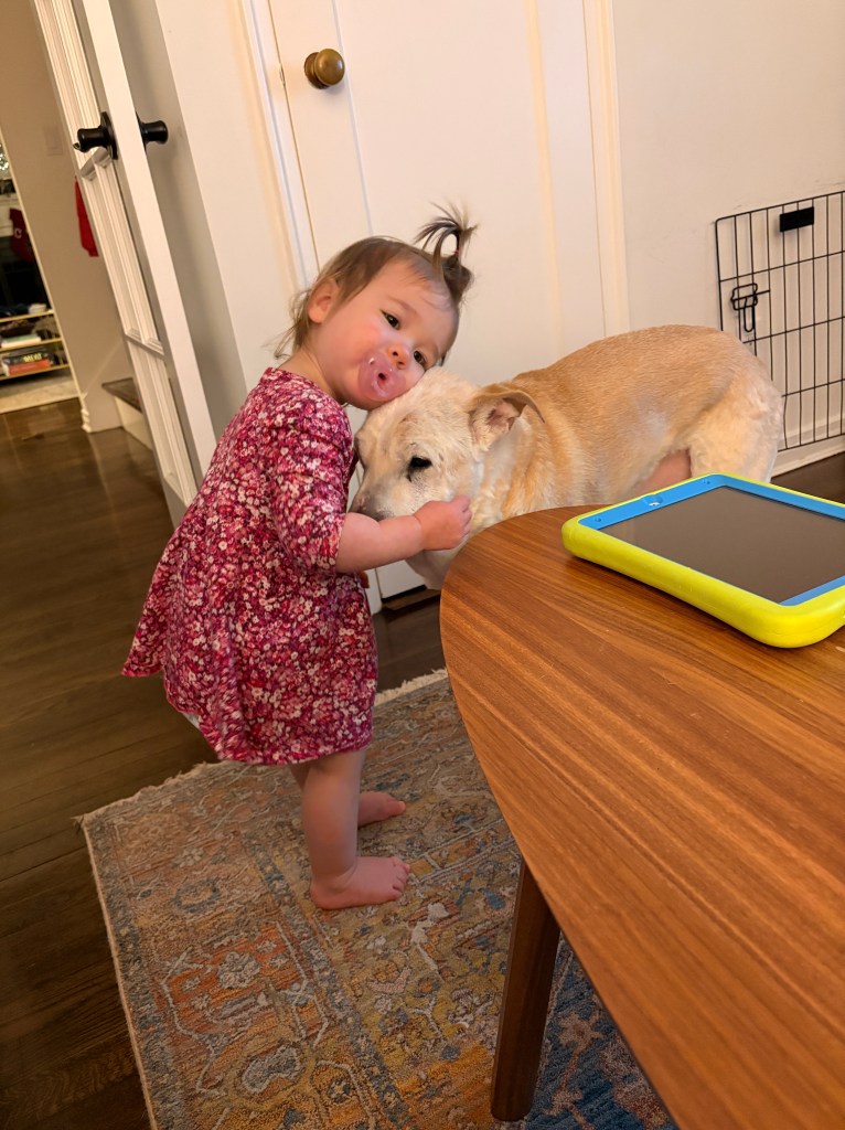 Our sweet Sophie had a tough couple of weeks after Rob gave her a filet mignon for her birthday…. Needless to say, she cannot handle that kind of rich food anymore and left evidence of it all over our house. We got a little worried for a bit there, but she has been on the mend. And Clare continues to be her #1 fan, always so excited to see her and give her sweet kisses.